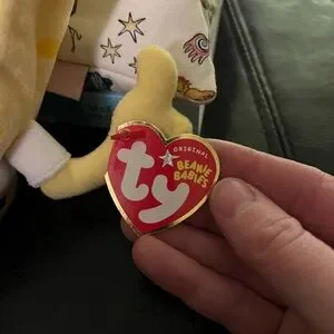 Adorable plush toy by Ty. Features vibrant yellow and brown colors. Ideal for collectors and fans.