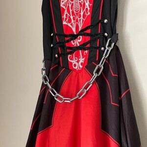 Red + black vampire dress with silver gothic detailing
