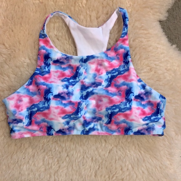 Never worn! This top could be a sports bra or a swim top. Racerback style, removable cups included. Size large. Never worn because it was too big on me.