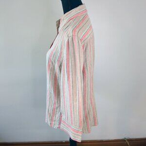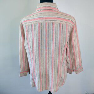 Sportscraft 100% Linen Button Down Striped Shirt Office Summer Top Australia
