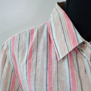 Sportscraft 100% Linen Button Down Striped Shirt Coastal Casual Office Australia