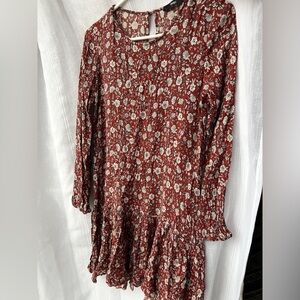 Sportsgirl Womens Orange Floral Flowy Ruffle Long Sleeve Summer Preppy Dress 6 •Size 6 - small •Great condition, no flaws •Lightweight and flowy for super hot days, works as a swim cover up too! •Ruffle bottom, long at the back
