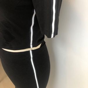 Stretchy 2-piece black crop top & midi skirt set with sporty stripes . Made in Bulgaria.