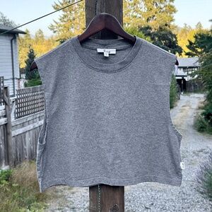 Boxy heather grey cropped tank. Worn maybe 2-3 times, in excellent used condition. Bought in a boutique in Vancouver. Please note the image with the model is not the exact tank, just an example of potential fit and styling.