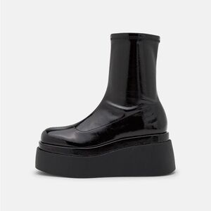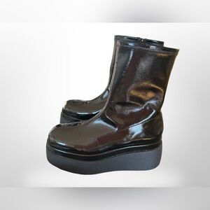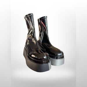Thick wedge platform sole with a heel height of approximately 3 to 3.75 inches.