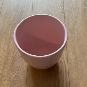 * Simple matte ceramic planter in a soft light pink color