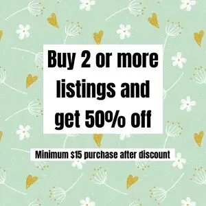 Buy 2 or more listings and get 50% off