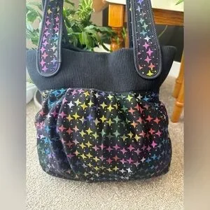 Fun and full of personality large enough to carry all your essentials! Rainbow coloured in black background.