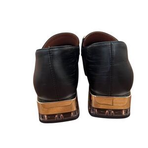 - Featuring an architectural heel design with two tones, including a striking gold hue and semi-translucent finish, these loafers offer a unique and eye-catching look.