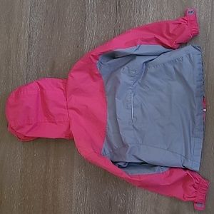 Zip up with snap and velcro closure over top. Velcro closure at sleeves. Not fleece lined but thicker outer with breathable interior as shown in last picture. size 4-5.