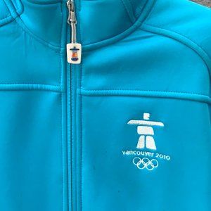 This jacket is from the 2010 Vancouver Olympic Games. Very warm fleece lining on the inside. Fits more like a medium.