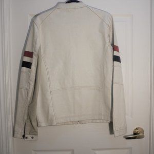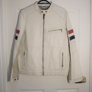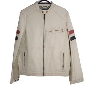 Springfield Men's Motorcycle White Stripe Biker Leather Jacket White Size Eur M