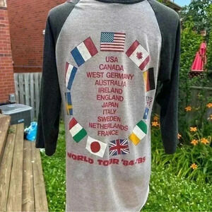 Vintage Born in the USA Tour Shirt purchased at the Toronto show in 1985. Almost 40 years ago. In excellent condition for its age. Tiny hole at seam, left shoulder which I can have a seamstress fix if requested. Mild piling.