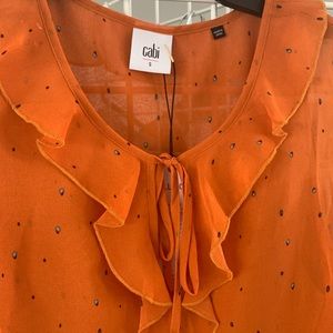 Two layers of this fabulous orange. Great for all seasons with ruffle detail on collar.