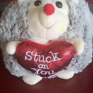 Spunky Hedgehog Bright Eyes With Red Heart and Nose 5" Fluffy Plush Stuffed Toy