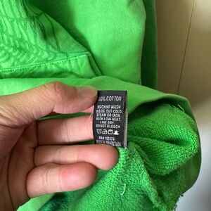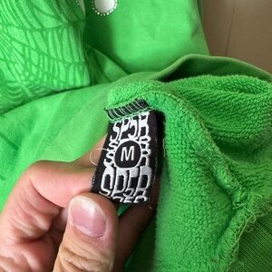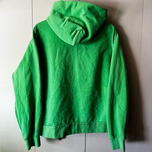 Bold green hoodie with front logo. Comfortable and stylish. Ideal for casual wear.