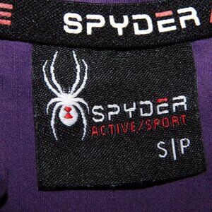 This Womens Small Spyder Activewear Purple Fitted Full Zip Athletic Jacket is in great clean bright condition. Jacket is 75% Nylon - 25% Spandex - Machine washable. Jacket features 2 zipper side pockets and thumb holes on cuffs. Reflective Spyder written down middle upper back.