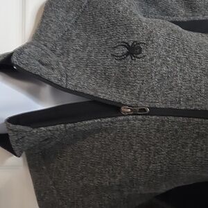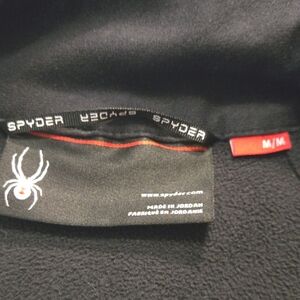 Cozy black fleece jacket by Spyder. Features iconic spider logo and red accents.