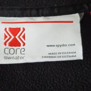 Spyder Core fleece sweater in black – excellent used condition. No signs of wear and all original hardware. Soft, warm and perfect over a thin base layer. Two zippered pockets on the front. See photos for details.