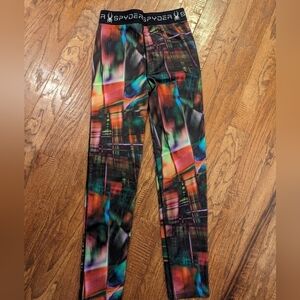 Spyder ski leggings or base layer, Colour splash, youth 14/16- L or Women's S. As new condition. Worn once or never. See other listing for a purple pair.