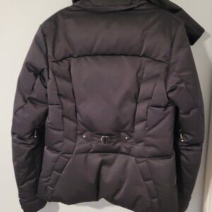 Black waist length Spyder Ski Jacket. Removable fur collar.