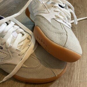 White with purple and grey accents. Size 7.5.