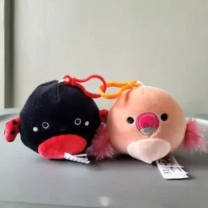 Excellent condition cookie the flamingo and Trudy the ladybug Squishmallow keychains that are scented and missing the top tag