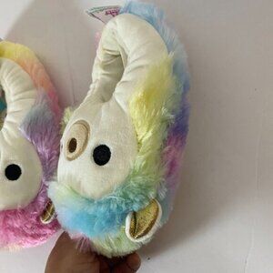 Keywords: Squishmallows slippers, fuzzy kids slippers, rainbow animal slippers, cozy plush footwear, Jazwares FuzzAMallows