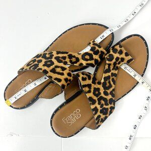 Ss 10- Franco Sarto Ginny Leather Leopard Print Calf Hair Slide Sandal