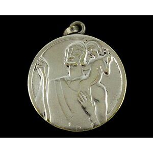 St Christopher Large Vintage Mod Medal Pendant Signed Trecy Patron Saint Travel