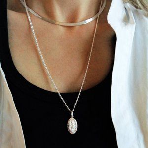 The pendant is finished with a 2 mm Solid 925 Sterling Silver Curb Chain.