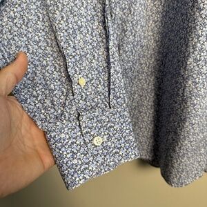 St. Croix Men's Long Sleeve Bluish-Purple Allover Patterned Button Up Shirt M