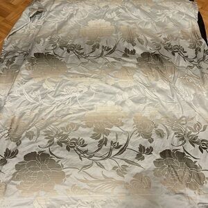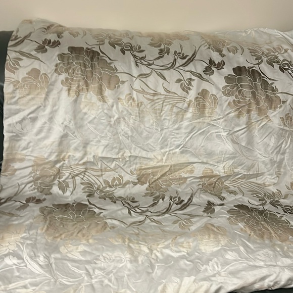 @jasmine_bunny Hi I woud say: base is light blue grey with golden silver pattern, An other side is brown. Only duvet, no pillows cover