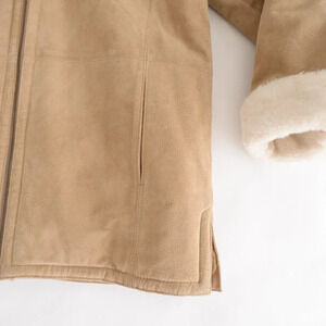 St. John Bay Beige Washable Suede Aviator Jacket with Hood SM