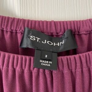 Breezy, easy, effortless-- this St. John sleeveless dress is everything you love about summer. The fit's relaxed and has an elastic belt that lets you play with the style. The lovely plum coloured fabric is lightweight. Stretch adds another layer of comfort, and there are two discrete hand pockets and a gently flared skirt. Size 2 - please see pics for approximate measurements (fits large, in my opinion).