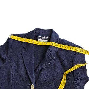 St. John Collection V-Neck Button Front Santana Knit Blazer, Classic, Blue, Sz 2