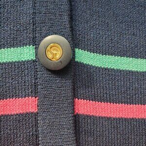 St. John Collection Wool-Blend Navy Striped Sweater Cardigan Size 14