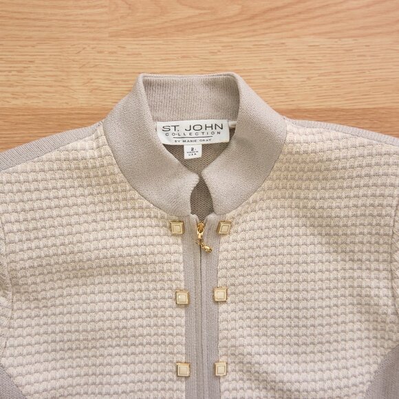St John Collection by Marie Gray Wool Blend Knit Black Full Zip Cardigan, Size 2