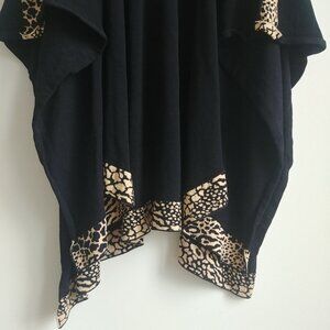 St. John Collection by Marie Gray wool cape black with animal print trim OS