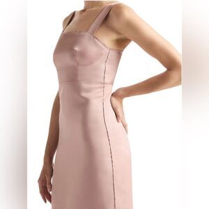 St. John Duchess Satin Sleeveless Midi Dress in dusty rose/mauve