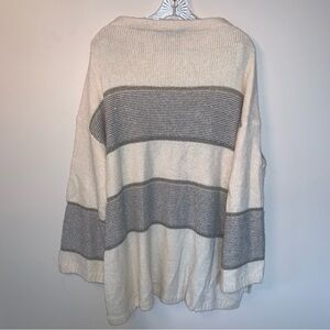 St. John Luxury Cashmere Wool Sweater Large Striped Cream Gray Metallic Knit XL