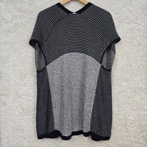 St John Open Cardigan Womens Medium Black Gray Short Sleeve Sweater Sequins