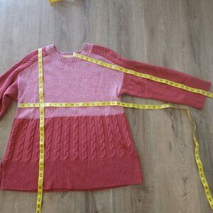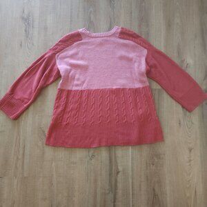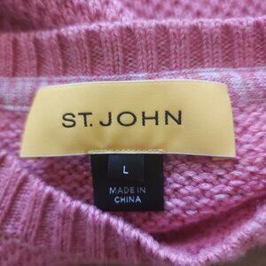 St. John Salmon Color Block Cableknit Crew Neck Wool Knit Sweater