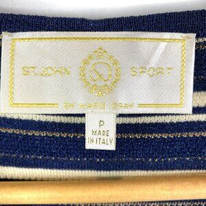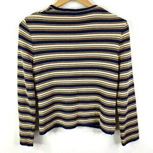 St John Sport Cardigan Sweater Womens Size Small Navy Blue Gold Striped Holiday