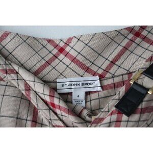 St. John Sport Women Size 4 Small Beige Red Skort Plaid Pleated Mini Skirt Skort