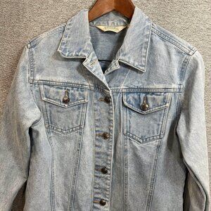St John's Bay Jean Jacket Women PSmall Blue Light Wash Pockets Long Sleeve Denim
