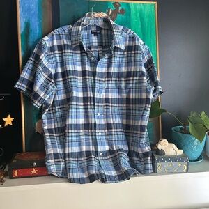 St. John's Bay Men's Blue and Black Plaid Shirt XL