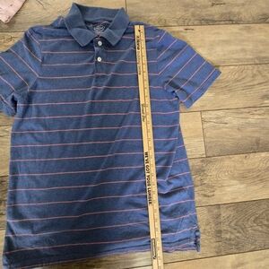 Stylish blue polo shirt with subtle stripes. Perfect for casual outings. pink blue