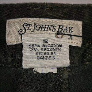 St. John's Bay Stretch Ladies Size 12 Olive Green Straight Legs Corduroy Pants