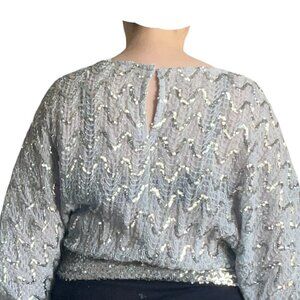St. MARTIN Silver Wavy Sequin Crop Top Dolman Sleeves Glam Retro Disco Party Med